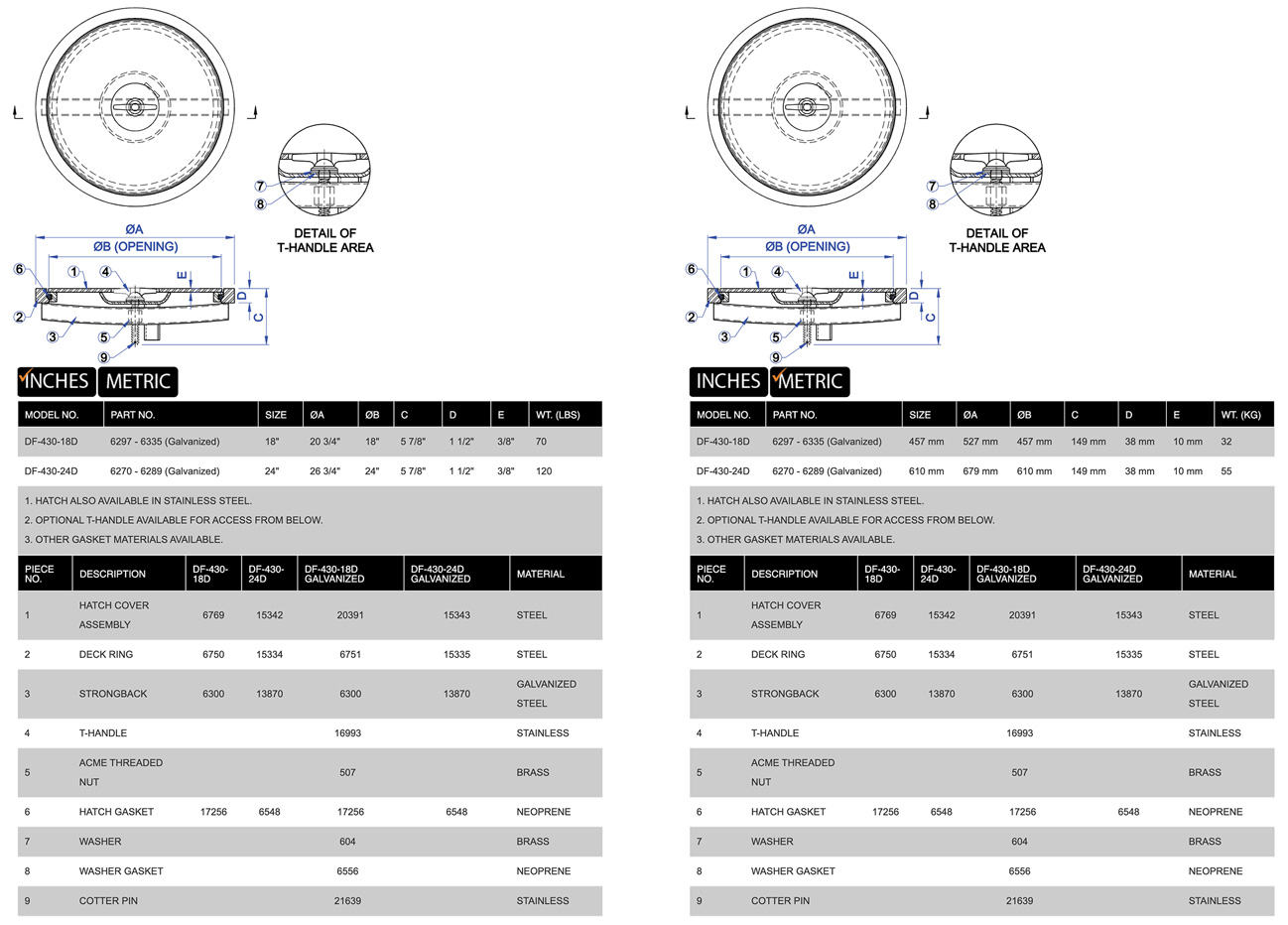 - Customizable Options:Available in various round and oval sizes, with options for different materials, coatings, coaming heights and hardware to meet specific needs.