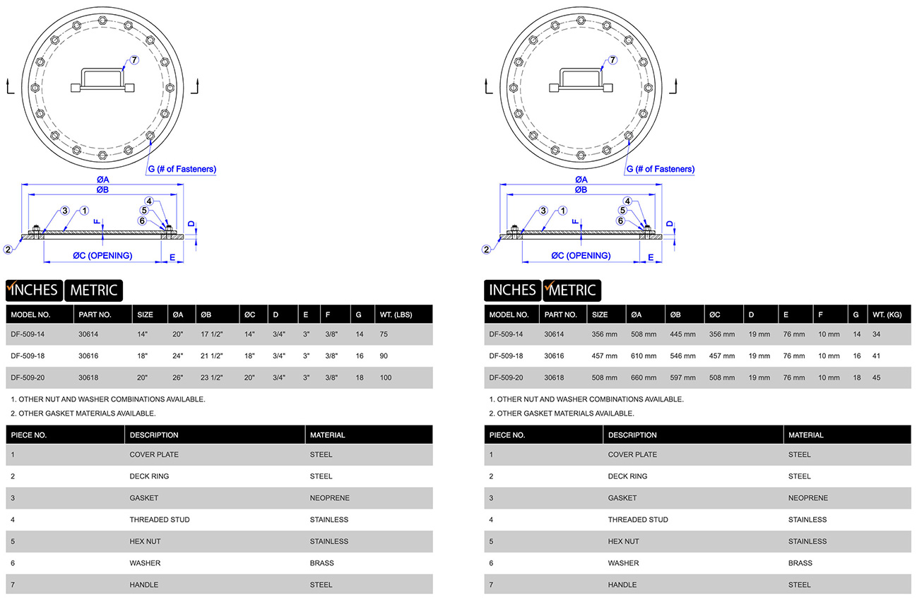 - Customizable Options:Available in various round and oval sizes, with options for different materials, coatings, coaming heights and hardware to meet specific needs.
