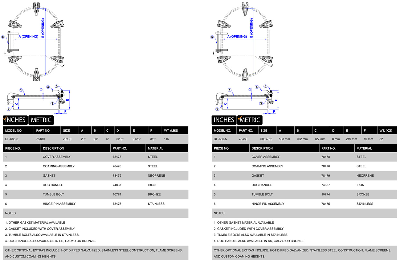 • Customizable Options:Available in various round and oval sizes, with options for different materials, coatings, coaming heights and hardware to meet specific needs.