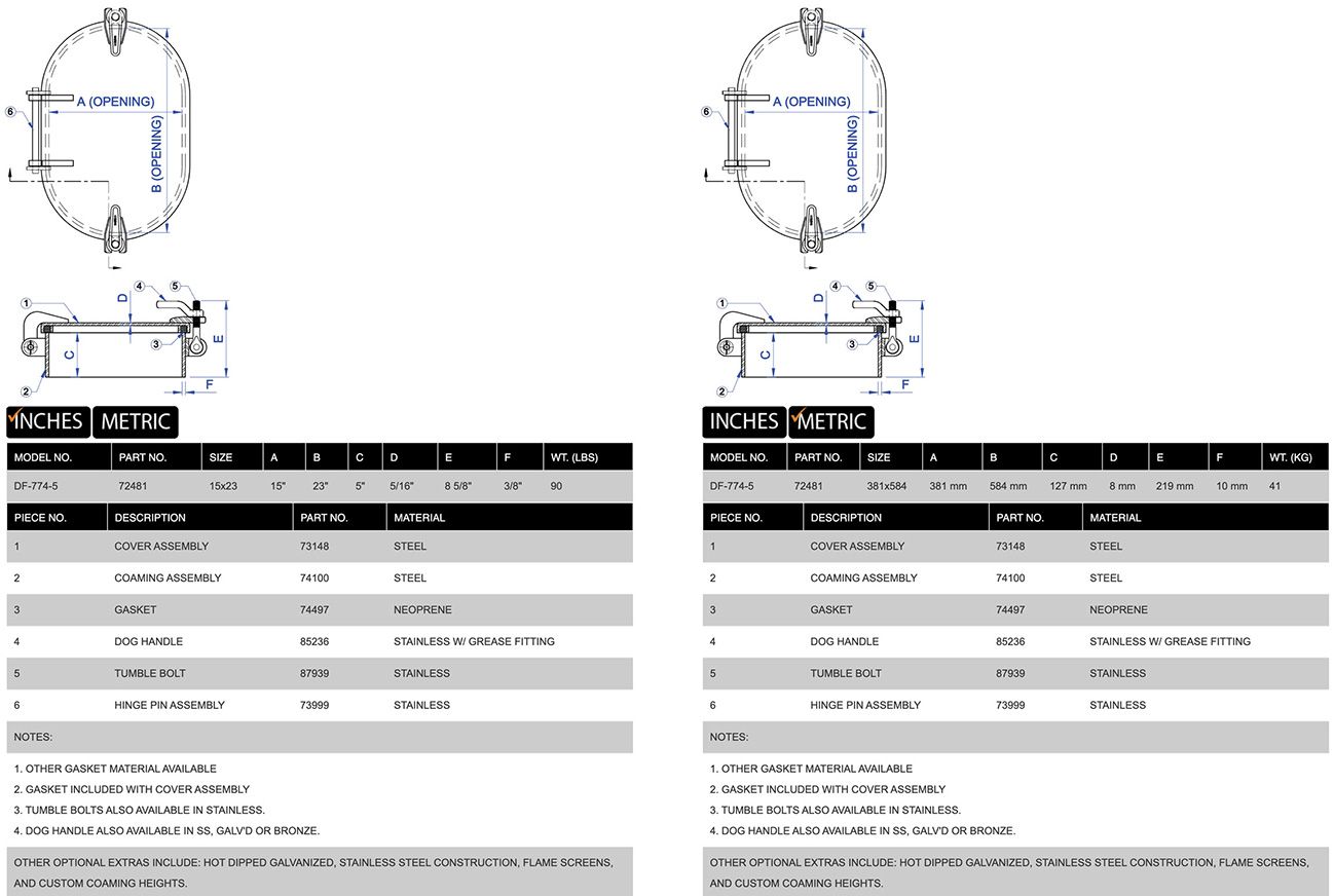 • Customizable Options:Available in various round and oval sizes, with options for different materials, coatings, coaming heights and hardware to meet specific needs.