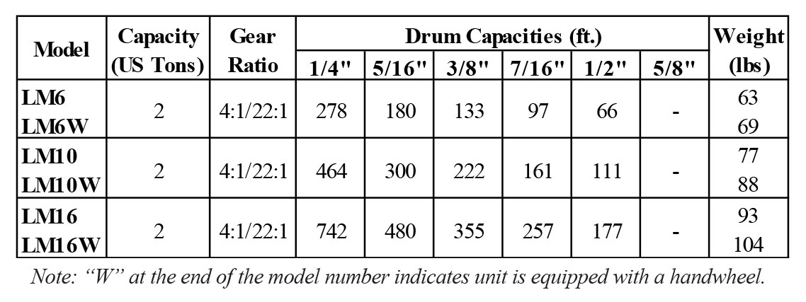 * Disc brake handle incorporates a “Weston style load brake to automatically hold the rated load in lifting applications.