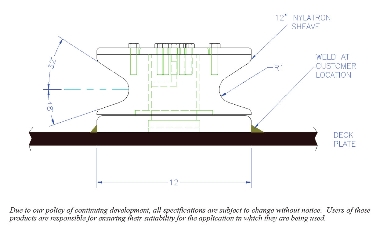 - 12” Replaceable Machined Nylon Sheave with Bronze