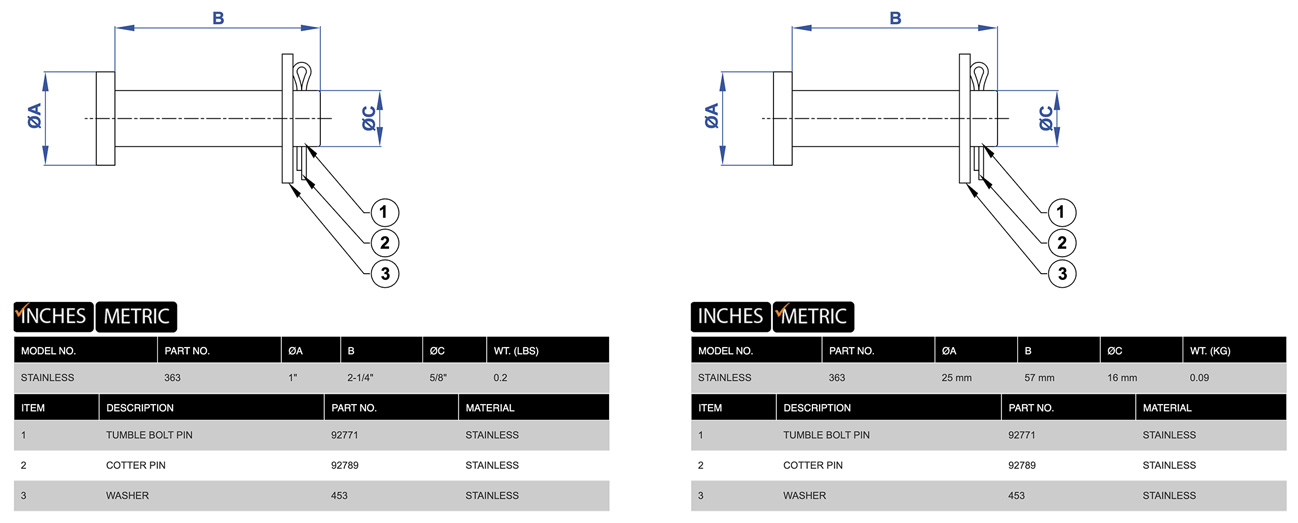 Tumble Bolt Pin Kit